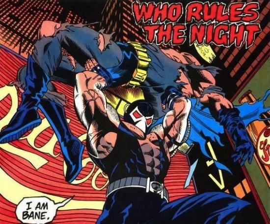 Orchestrating a mass break-out from Arkham Asylum was the first part of his plan. Releasing all the maniacs Batman had put away forced the Dark Knight through a gauntlet of his enemies. Bane pulled the strings from afar, working Batman into one battle after another until the hero was physically and psychologically exhausted. Then, having deduced Batman’s true identity and his weaknesses Bane struck in a place Batman never expected: Wayne Manor. Beating him down, Bane finished the fight by snapping Batman’s spine over his knee, putting him out of commission for years.