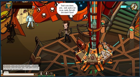 This free-to-play browser based role playing game sees players recruited by The Doctor to travel in the TARDIS to help recover the parts of a broken time crystal. Beginning in an alternative version of London taken over by Autons you must travel through a variety of locations and times to battle all the better known villains in order to find crystals. Each new recovery allows players to cash in for credit that they can use to buys outfits and furniture for their room in the TARDIS.