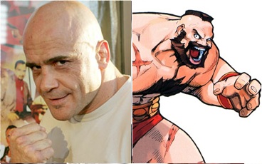 Technically, Zangief is Russian and Rutten is Dutch, but they are both broad shouldered, muscle bound martial artists. Rutten is in actuality a UFC Heavyweight Champion with a black belt in Tae kwon do and Karate, and also experienced in kickboxing. He also has the personality of a WWE wrestler being both affable and talkative. His persona begs for camera attention.