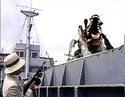 Having been given full control of his TARDIS as a reward for assisting the Time Lords dealing with Omega in the previous adventure The Doctor and Jo Grant waste no time going for a spin. Expecting to have landed on a distance alien world The Doctor is more than a little miffed to find that they’re on a ship on Earth only fifty years prior to where they left off. Before long they notice something odd (in addition to the sea monster that attacks shortly after their arrival) because everyone on the boat is stuck in a loop, repeating the same actions again and again with no memory of what has gone before. Searching for answers the time travelers find themselves passing through a hatch and through giant circuitry until they find themselves in a marshland being hunted by the giant and deadly Drashigs.
