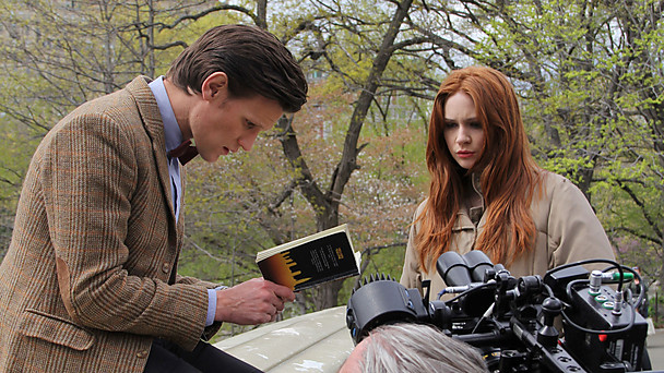 The story opens with Amy, Rory and The Doctor enjoying an idyllic afternoon in Central Park having a picnic and reading books. Whilst Rory takes a break from the combined lunacy of his wife and their time-traveling companion the Doctor makes an astounding discovery. The events in the book he is reading – a pulpy crime story – dictate what happens to Rory, who promptly disappears. The Weeping Angels have taken him back in time where he discovers how the story knows what will happen to him (and why The Doctor was enamored with it)…it was written by River Song.
