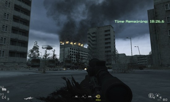 If you’re looking for something that symbolises the strength and danger of nuclear warfare the city of Pripyat is an easy choice. Abandoned after the meltdown at Chernobyl Nuclear Power Station it is a bleak, empty place full of crumbling buildings and packs of wild dogs. The location is used in Modern Warfare in a flashback with Price as part of an assassination mission that sees him crawling through deserted apartments and offices. Not only is it a fairly harrowing visual but a well designed pair of levels. Crawling through tall grass on your stomach while the treads of a Russian tank crunch gravel a foot away is intense to say the least.