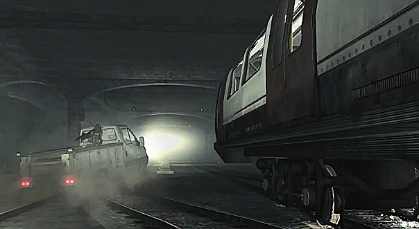 It looks like a slight change in pace to the usual level when the player is sent in as a member of MI5 to investigate suspicious cargo in rainy London. Just when you’ve settled into stealth-mode the action kicks up a few dozen notches and you find yourself in a truck trying to match pace with a tube train while in a gun fight with the terrorists on board. Big action and tense excitement.