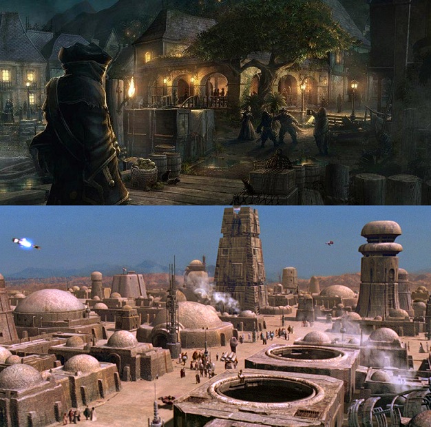 Both places are “ports” of their movie universes known for the unexpected danger that lurks around every corner and consisting of a heavy “scoundrel” overload with very little military resistance. Both are home to a memorable bar that serves as the meeting place where our heroes get their ship and crew to assist them throughout the journey in the first feature.