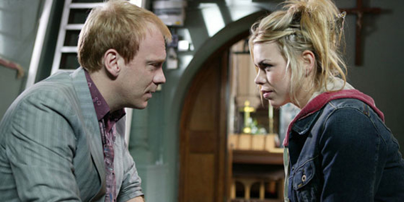 Holed up in a church with wedding guests and Rose’s parents (not to mention a baby Rose) they come under siege from the monsters. The Doctor, however, is furious as the problems that Rose’s rash actions have created and eventually storms out. Seeing the Doctor abandon those in trouble and a companion outside of their timeline is a surprising turn and carries a strong impact. Although it’s an episode with a strong emotional pull the plotting gets a bit wonky part-way through, and the dues-ex machina used to resolve the episode is a stretch. The Reapers who are attacking the characters are pretty shoddy looking and take away from the horror element the episode needed.