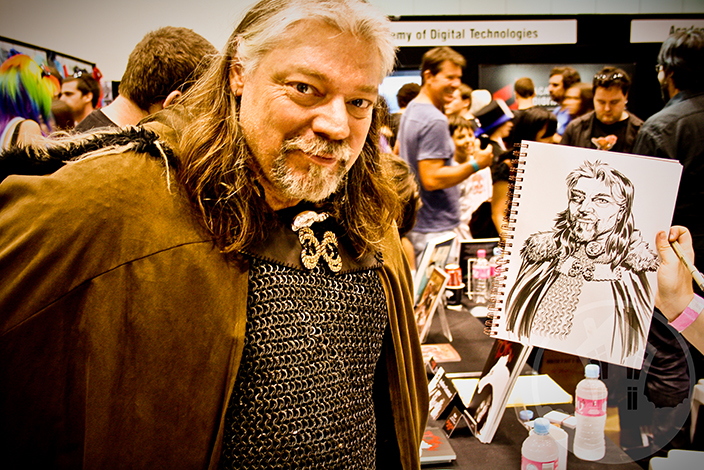 Attendee (who told me his name, and I forgot it, because I’m stupid) and his Emily K. Smith drawn commission portrait!