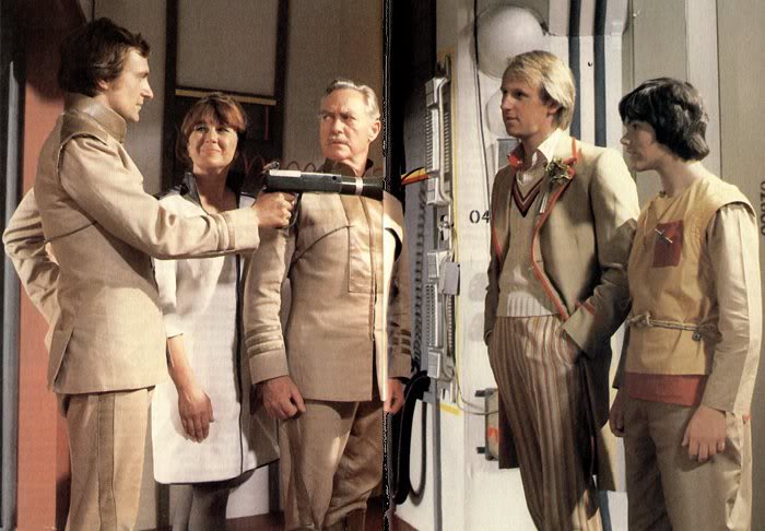 In addition we have the Doctor and Adric taking different sides. Although Adric has not become aware of Monarch’s ultimate plan he is taken in by the rulers plan there’s some good writing behind the conflict between the Doctor and his companion and they try and persuade each other to change their thinking. Also of note is Tegan being unable to cope with this unplanned detour and trying to use the TARDIS herself to get back to Earth only to land it outside of the spaceship, further complicating matters.
