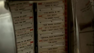 Also when looking for Journey on the jukebox, the page before that had ‘This Magic Moment’ by Jay & The Americans, the very song playing during Tony and Bobby’s talk