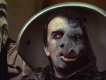 Much of the episode revolves around the retrival of an amulet from the Timelash which would take power from the Borad’s counsellors. In order to coerce the Doctor into helping Peri is taken hostage. When trying to guide the TARDIS into the Timelash the Doctor winds up in Scotland, 1179, where he picks up a young H.G. Wells. Along with the rebels and Wells the Doctor sets out to uncover the mystery surrounding the Borad, who is revealed to be an insane scientist whose experiments with the underground reptilian race of Morloxs has resulted is disturbing mutations. Borad himself has already been afflicted, and is partly reptilian.