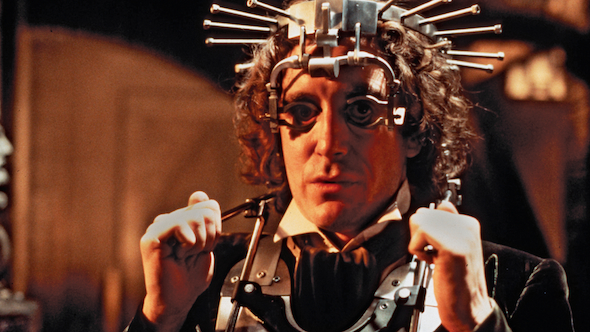 Speaking of action, there is much more convention action sequences in this film compared to the typical Doctor Who story. Riding around the place on a stolen police motorcycle is something else that feels drastically out of place, and the special effects heavy confrontation at the end is just a drawn out, poorly filmed mess. For reasons unknown the Doctor is forced to spend this confrontation wearing what it very clearly a repurposed optometrists testing device. Things are made worse with constant cuts back to close up footage of the wacky mortician making faces at party, as though this is going to be comic relief. Plus we get the ever-frustrating cop out of main characters being killed in the finale only to be brought back to life in the next scene.
