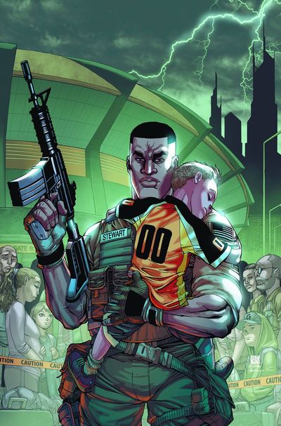 This has to be the weirdest “Batman: Year Zero” tie-in of all of them, just because John Stewart and Batman have the loosest relationship of the rest of tie-ins. With Gotham in blackout, it looks like pre-ringslinger marine, John Stewart, is deployed as part of a peacekeeping group.