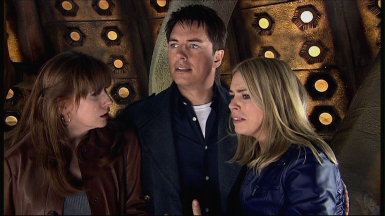 After receiving a message from Rose at the end of the previous episode the Doctor goes to investigate – only to find that it has vanished. He contacts galactic police force the Shadow Proclamation and learns that the Earth is one of twenty-seven planets that have been stolen by those wacky Daleks, lead by their creator: Davros. Many of the Doctor’s allies escape the Dalek’s conquest of Earth by going into hiding and are contacted by Harriet Jones. Through their efforts they allow the Doctor to locates the missing planet and he confronts the Daleks.
