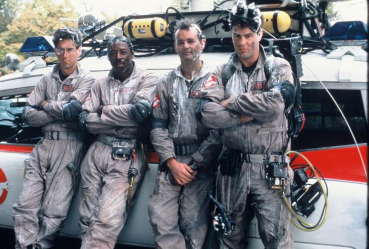 Bill Murray, Harold Ramis, Dan Aykroyd, Ernie Hudson, Sigourney Weaver (not pictured), Annie Potts (not pictured) and Rick Moranis (not pictured) for Ghostbusters (1984)