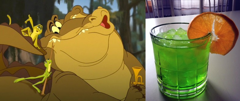 A first time for this series, Paul C. provided a guest contribution in this delicious green drink and here’s what he had to say about it: “When trying to think of a complimentary component to Jamie’s dishes for The Princess and the Frog I kept coming back to one New Orleans staple: alcohol! However, why make a regular drink when you can make one as green as our main characters in the movie? Without going over the top I came across a Green Iced Tea recipe for a sort of refreshing and alcoholic beverage that isn’t overwhelming. You take 1 Decaf Ginger lemon tea bag, 3 ounces of cucumber juice, 1 1/2 ounces of tequila and some lemon juice (or if you want, ginger ale for sweetener). The end product is something of a crossover between two New Orleans staples, alcohol and iced tea, and it was pretty tasty.”