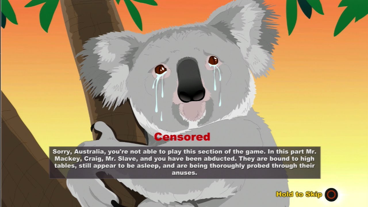 Firstly, this is a big brand name. South Park has been on the air for 17 years and has kicked up plenty of controversy in that time. It’s very unlikely that gamers and the parents of gamers won’t know what they’re getting in to. This is the show that features Paris Hilton being sucked into a man’s anus and a penis being grown on the back of a mouse. I suspect that the censorship board paid more attention to this title for that reason, as there’s a trend of the better known games being targeted for censorship.