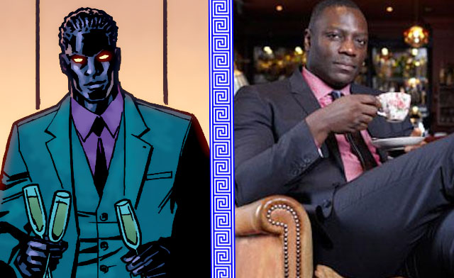 God of Art and the Sun. Apollo is marble skinned with a deep glow coming from his eyes and mouth. He is a smooth operator with a commanding presence. Like Hades, he is another real slick individual who always keeps composure. Adewale Akinnuoye-Agbaje not only looks like the character, but he is pretty slick himself. I think he gets saddles with a lot of savage characters, but I would love to see him play more of a playboy James Bond type.