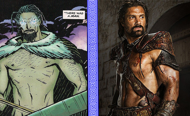 The Father of the Gods. God of the Sky. Instead of the usual, puffy gray haired generic god look, the new 52 Zeus has a darker complexion and dreads. He has more of a Conan the Barbarian look, and he even has the super bad attitude to go with it. Manu Bennett brings a gravitas to anger and definitely has the physique to go sword to sandal with the best gladiators out there.
