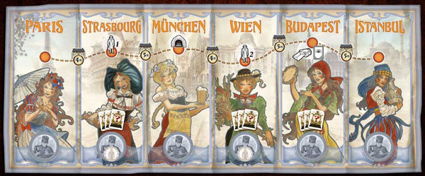 The set is up to the Days of Wonder standard, with a highly decorated board featuring the train and journey mapped out in bright detail with colourful figures throughout. Little busts nicely represent the characters and each player gets their own ticket booklet to keep their notes in. There aren’t a lot of elements needed to play the game but the designers have taken to time to make everything thematic and at a high quality.