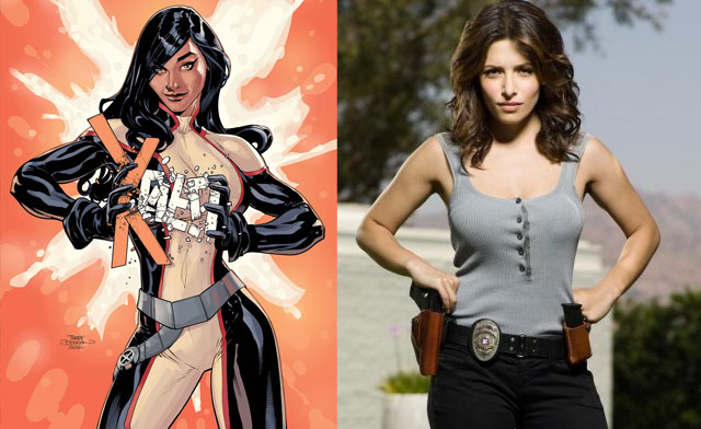 Monet St. Croix, known usually by just her first intial, M, was originally part of the Massachusetts Xavier academy. She is one of the few from that school that hasn’t been forgotten . She has superhuman strength and can fly. She also brags about psychic abilities, but I feel like she doesn’t use them a lot. She brags a lot though. She tends to think she’s better and often proves her badassdom. Sarah Shahi gleefully jumps into similar characters, women of action, although usually with much less ego.