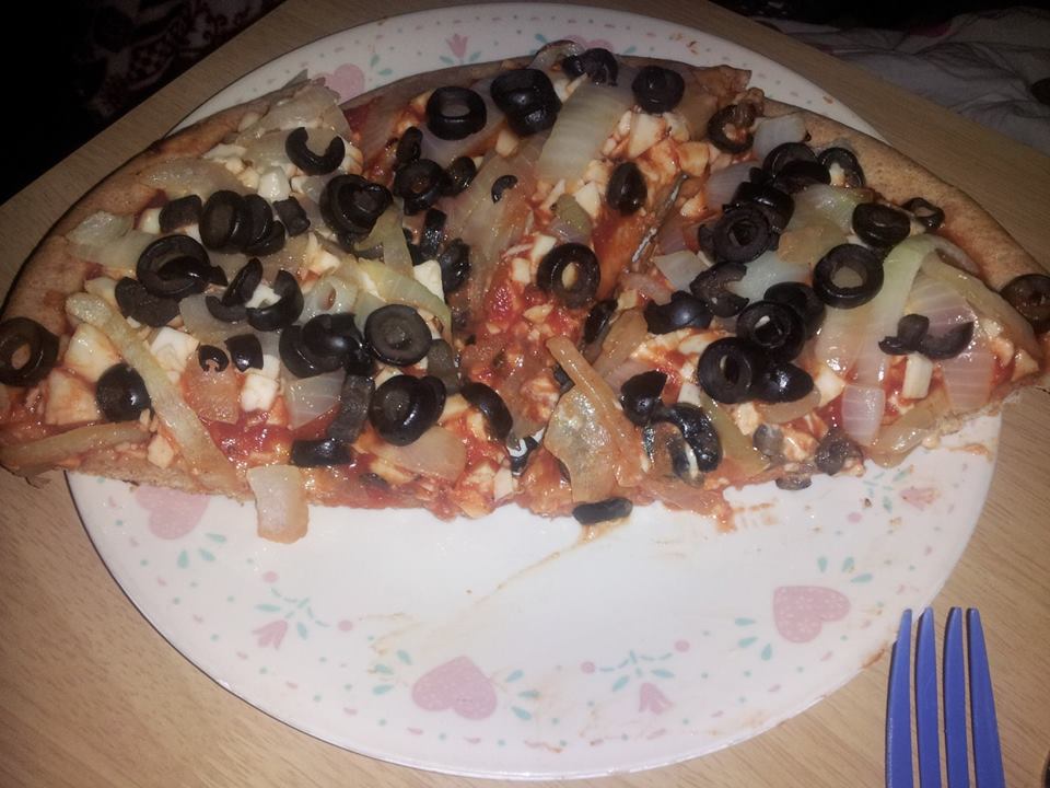 Pizza Planet is the famous food establishment from the Toy Story series. It’s a super cool space-themed pizzeria that was turned into a real eatery in Disney World. To pay homage to Pizza Planet and the idea of childhood in general, I make pizza for this entree. I bought a pre-made whole wheat pizza crust and topped it with sauce, soy cheese, onions and olives. Making homemade pizza is great for a couple of reasons. First, it’s incredibly easy. You can have each friend or family member decorate and make their own. Second, you can make it however you want! If you haven’t had a “make your own pizza” dinner night yet then get on it!