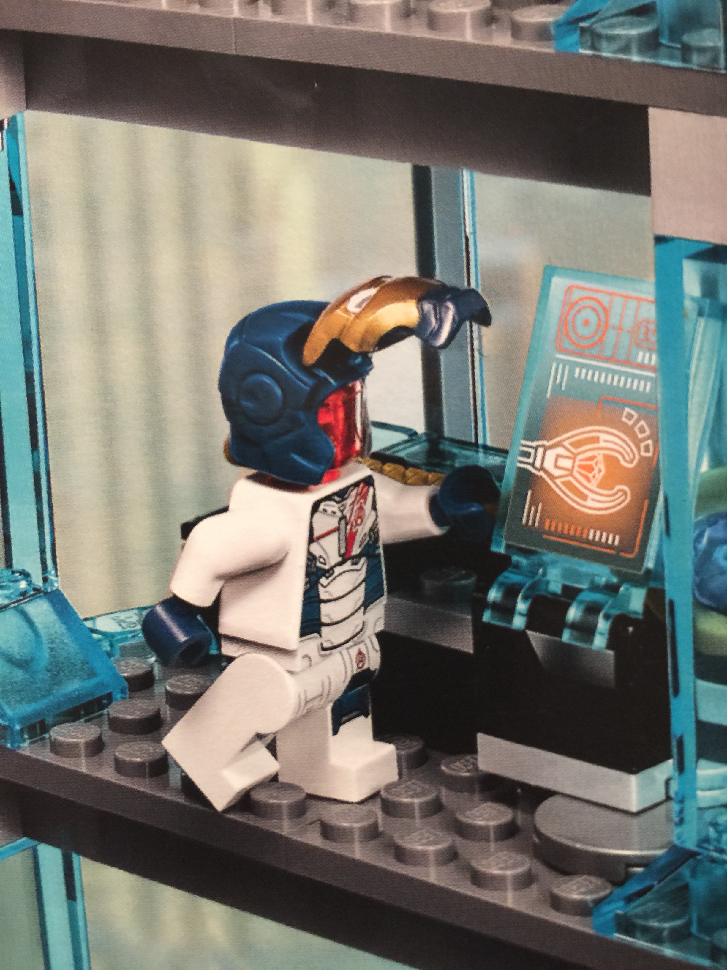 In the instructions the final pages lay out the intended action. In this case it’s Iron Man flying through the air and knocking down Scarlet Witch. What’s not clear is whether this happens before or after Iron Man straps on the Hulkbuster suit. Perhaps Scarlet Witch prompts this show down, maybe she breaks it up.