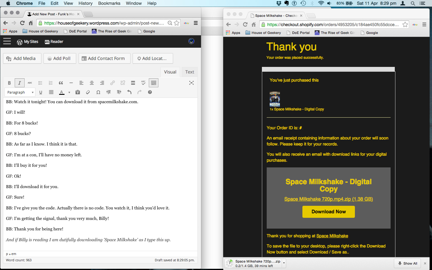 BB: Watch it tonight! You can download it from spacemilkshake.com.