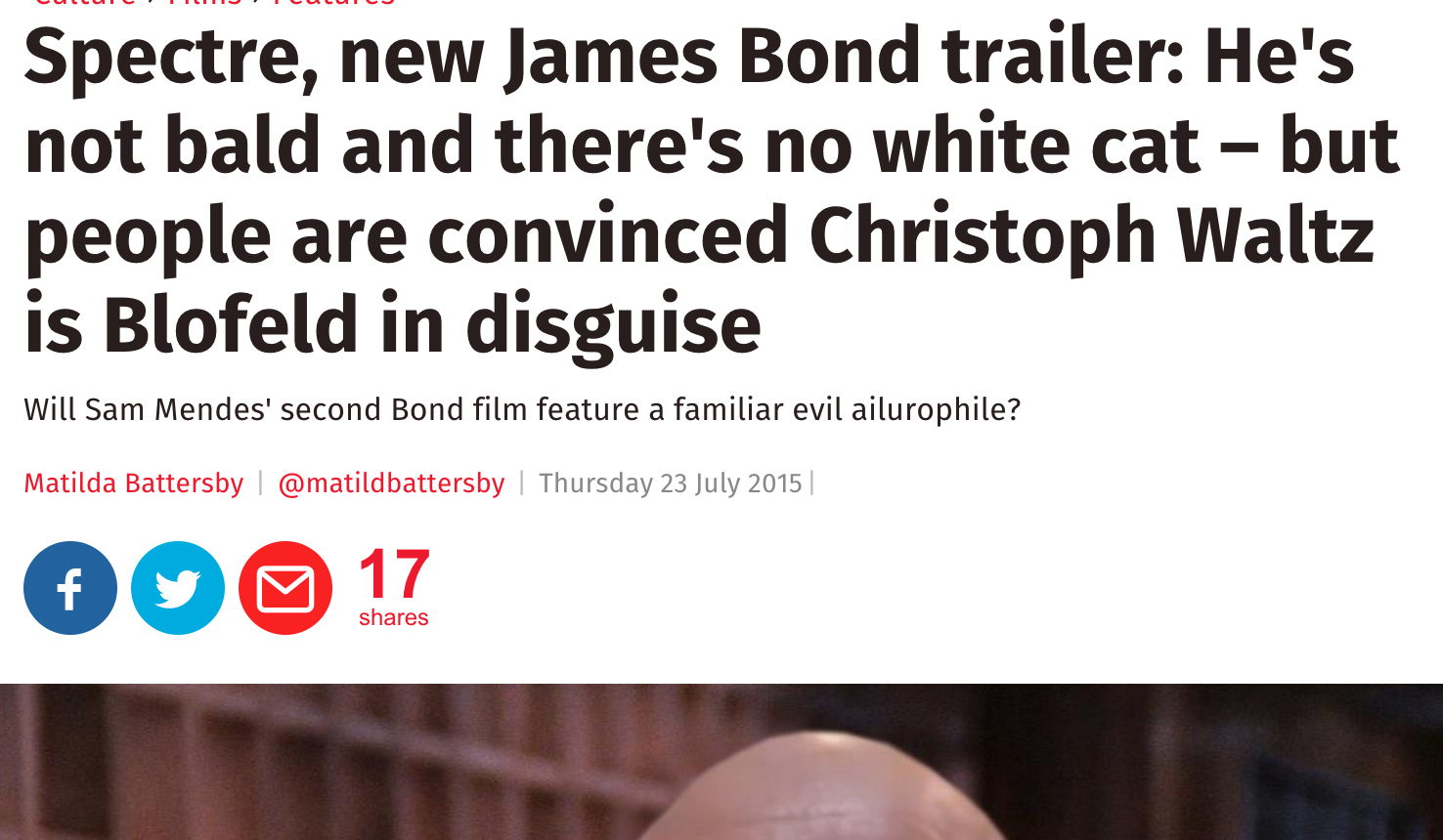 There is the argument that people can restrict their own information as well. I don’t know why they didn’t use the last one as a selling point though – Christoph Waltz as Blofeld would have piqued my interest more than this ambiguity.