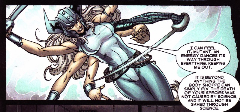 Across the pond from the base team is Excalibur, a British team founded by series mainstays Shadowcat and Nightcrawler. We considered Captain Britain for this list as an alcoholic, severely depressed superhero is interesting to say the least, but he’s not technically a mutant having gotten his powers from Merlin (really). Instead we’ll go with his substantially better half. Meggan, like Mystique, is a shapeshifter but her powers are empathic in nature. Essentially she takes on forms influenced by the perception of those around her. When people find her scary, she takes on the form of a horrifying monster, and when they are attracted to her she becomes beautiful. There’s endless ways that themes of acceptance, public perception and identity can be based around this power.