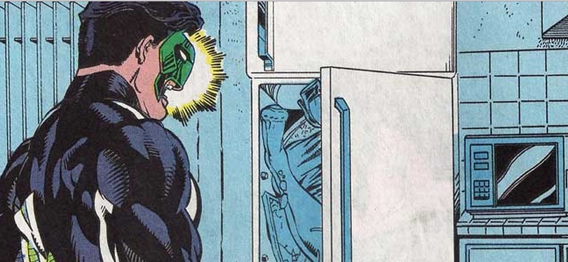 As you’d expect, the origins of the expression is in comic books. Kyle Raynor, at the time the Green Lantern, finding his girlfriend Alexandra DeWitt is unceremoniously murdered, dismembered and jammed into a fridge. All to give Green Lantern more reason to go and fight ‘Major Force’. Gail Simone coined the term to bring to creators and readers attention that this was a disturbing narrative trend that gets used with alarming frequency.