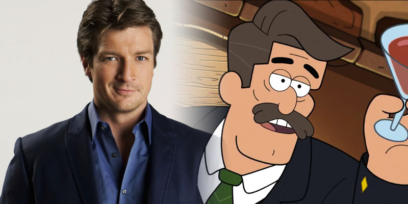 Geek royalty Nathan Fillion, star of Firefly, Castle and other roles including making me tongue-tied, disguises his voice somewhat for his role in Gravity Falls. With the posh twang he’s not quite recognisable as Preston Northwest, the controlling and abusing father of Pacifica Northwest. I want to jam that bell up his nose.