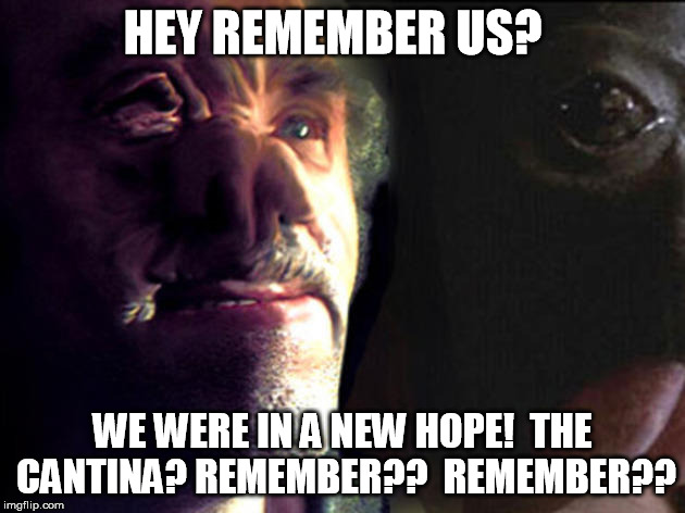Look it’s cool and all to give nods to the fans. I appreciate it myself. But some of this stuff was soooo unnecessary. See exhibit A above with Evazan and Ponda Boba. You may remember them as the thugs who harassed Luke Skywalker at the cantina in A New Hope. Well they also made an appearance in Rogue One when they bump into Cassian and Jyn on Jedha. There’s other instances as well such as Vader choking Krennic to remind us that Vader likes to choke people and the squadron leaders from the original film being cut into the final attack on Scarif. Now granted I’m not saying The Force Awakens didn’t have its share of fan service too, but the fan service in Rogue One felt like they were trying too hard.
