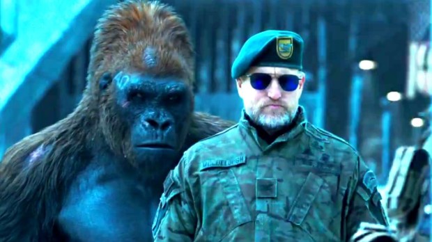 Woody Harrelson’s character is that social attitude personified. It’s no coincidence that he’s simply known as “The Colonel.” While he’s the leader of the militia, he’s faceless and primitive. This (to me at least) explains why we don’t get a lot of back story on why he’s so cruel and ruthless. Other than his son being killed by the mutated Simian Flu, there’s no real motivation for the Colonel to slaughter apes. In point of fact in a tension fueled confrontation with Caesar, the Colonel comments on how humans made the Simian Flu and hence the apes. Humans are complicit in their own downfall. Yet the Colonel chooses to be willfully myopic. It’s easier to blame “the Other,” if you want to use literary terminology, than it is to take personal responsibility. Some may consider Harrelson’s Colonel to lack depth but I think that’s the point of screenwriter Mark Bomback’s character.
