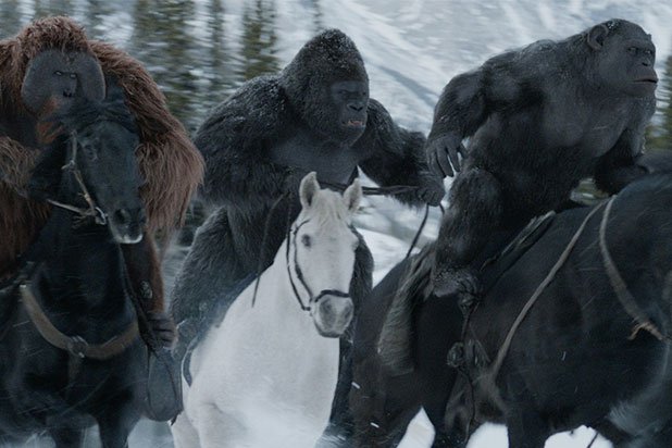 Plot: Two years after the events of Dawn of the Planet of the Apes, Caesar (Andy Serkis) and his tribe of apes have retreated to the Muir woods in the Pacific Northwest. Despite efforts to live peacefully away from mankind, Caesar’s life is torn asunder when his tribe is attacked by the Colonel (Woody Harrelson) and his faction of soldiers. When the attack results in a devastating personal loss, Caesar seeks revenge. Sending his tribe south to look for a new home, Caesar treks after the Colonel along with companions Maurice (Karin Konoval) and Rocket (Terry Notary). Along the way Caesar encounters Nova (Amiah Miller), a mute young girl whose affliction has serious ramifications for the future of the planet.