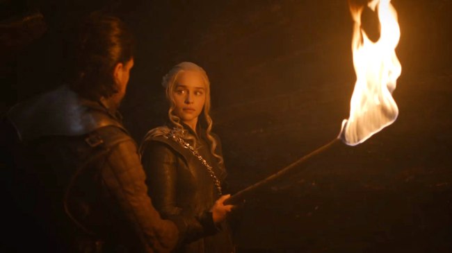 Unfortunately, Jon and Dany’s moment of bliss is interrupted when Varys and Tyrion come to tell Dany about Casterly Rock. Dany really loses her cool, at one point even calling Tyrion’s loyalty into question. The funny thing about dragons is that you can only poke them so long before they unleash Hellfire. And tired of “the clever plans,” that’s exactly what Dany does.
