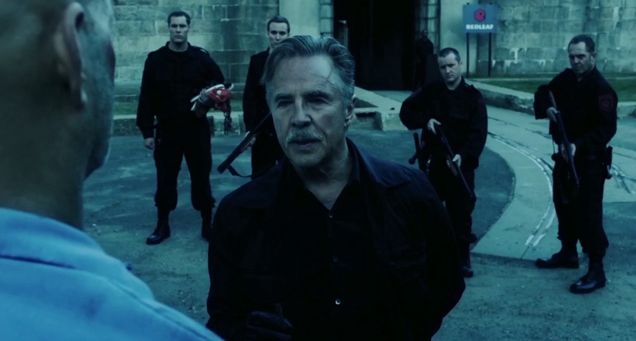 Actors Don Johnson and Vince Vaughn are what make this film compelling however. Their performances are anything but hokey. Johnson delivers as the malicious Warden Tuggs, the head of Red Leaf prison. He exudes a quiet vindictiveness that constantly hangs in the air. The fact that Johnson never raises his voice makes the Tuggs character that much more terrifying. With a constant cigarillo in his mouth and his guard lackeys in tow, Johnson chews every scene he’s in. Yet you can sense Tuggs’ grudging respect for Bradley as he’s not intimidated by Vaughn’s character at all. This is Don Johnson’s best performance in years and maybe the best villanous on-screen warden we’ve had since Bob Gunton as Samuel Norton in The Shawshank Redemption.