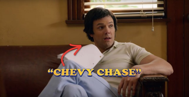 Mull tries to coax the audience across the threshold of disbelief, since no one really looked or sounded like the people they were playing, especially Will Forte who was portraying Doug in his 20s while 47. And it works! It is a classic lampshading, so obvious there is part of you that desperately wants to roll your eyes at it, but once it is out of the way, you can enjoy the little things and not worry about Jon Daly’s impression of Bill Murray or John Gemberling’s impression of John Belushi. It especially helped Joel McHale’s impression of his former “Community” co-star, Chevy Chase. McHale didn’t look much like young Chevy, nor did he really sound like him (his attempts at physical comedy are even worse than Chevy’s), but Chase and Kenny had a close relationship that plays in a few key scenes, and in order for it to work, we have to just accept it.