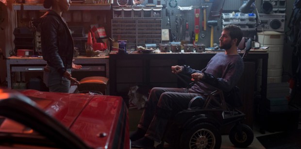 The acting in Upgrade is also solid. Logan Marshall-Green is magnificent. I totally bought him in this role. He manages to infuse some real pathos into Grey. Marshall-Green’s Grey is a truly tortured soul, consumed by grief and “looking for the off switch.” There’s an amazing moment where his Mom is washing Grey after the accident and there’s no words but you see Grey break down in tears. Marshall-Green conveys such despair in that moment that’s offset by his mother’s comforting embrace. Yet he’s also a man that, as the movie progresses, begins to lose his sense of self as STEM becomes more and more ascendant. (Speaking of, Simon Maiden’s voice work is phenomenal here. He goes from helpful, to dominant, to threatening, to chilling with ease.)