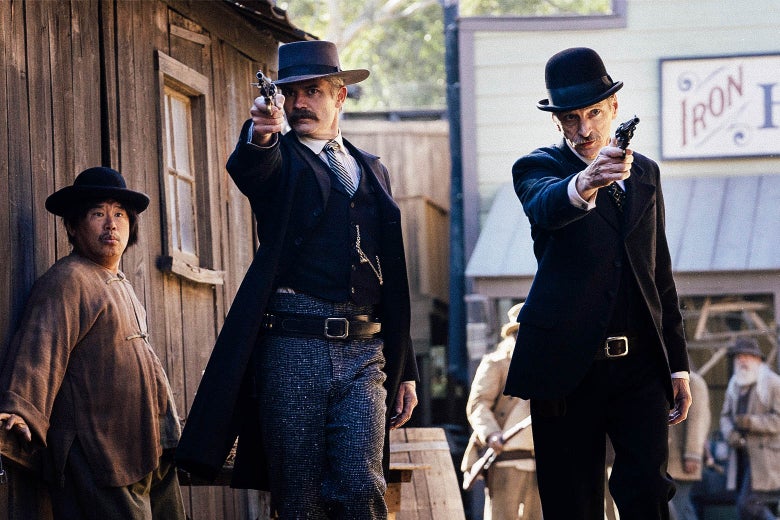 McShane also resurrects the character of Al Swearengen with equal success. Though suffering from a liver malady due to drink, he’s as stubborn and malicious as ever especially when it comes to his enemies. Yet in some ways he’s mellowed, particularly in light of what happens to his former employee Trixie. Unfortunately due to time constraints some other characters like E.B. Farnum (William Sanderson) and A.W. Merrick (Jeffery Jones) get short shrift. Yet fans of the cantankerous Doc Cochran (Brad Dourif) and the hilariously vulgar and endearing Calamity Jane will be more than satisfied.