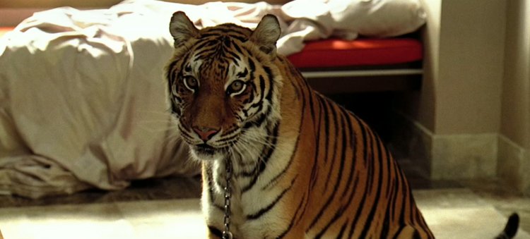 During the events of a black-out drunk bachelor party, one of the more outrageous things waiting for our heroes when they wake up is a live tiger in the hotel bathroom. During the events of the film they discover that they stole the animal from heavy-weight boxing champion Mike Tyson. Although the tiger used in filming did not belong to Tyson – in the midst of his face-tattooing and cocaine binge – he did once own tigers as pets. Word is he once owned seven felines and that’s pretty rad.