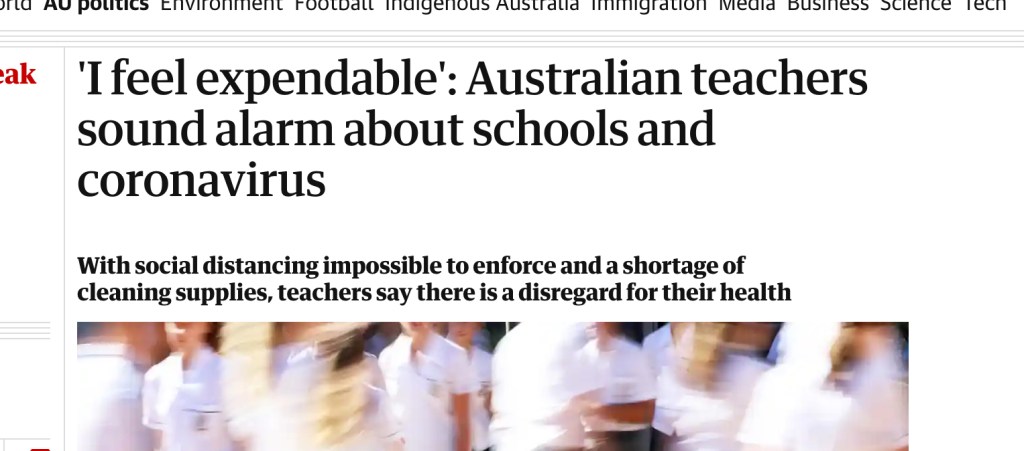 If you decide to collate the past weeks speeches, articles and commentary provided by ScoMo and the premiers you’ll notice a consistent line throughout. Closing the schools will damage the economy and keep 30% of the workforce at home.