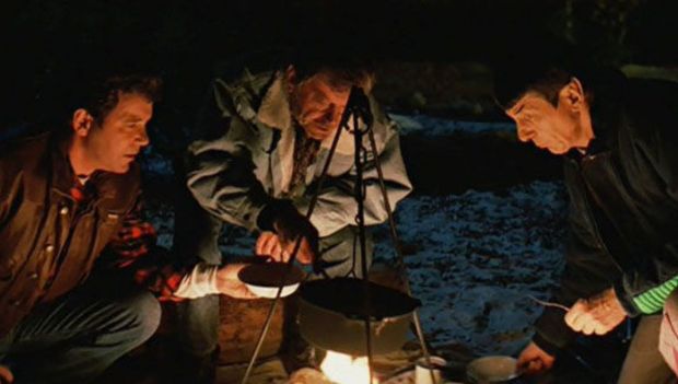 There’s also just an inordinate amount of goofiness in The Final Frontier. While Star Trek has always possessed a certain degree of humor, some of Frontier‘s content borders on ridiculous. Spock in rocket boots? Check. Bones, McCoy, and Spock singing “Row, Row, Row Your Boat” while camping? Check. Uhura doing a weird striptease dance on a sand dude to lure Sybok cohorts away from a building? Check. Kirk battling a feline alien female and then throwing her into a vat of water prompting numerous “wet pussy” jokes? DOUBLE check. Also let’s be honest, as great as Laurence Lukinbill is as Sybok in The Final Frontier (and he is great), Spock having a long, lost half-brother is decidedly soap opera-esque in nature. This is Star Trek after all, not The Bold And The Logical. Honestly, some of this can be contributed to Shatner as director, who’s ability never rises above the realm of competent.