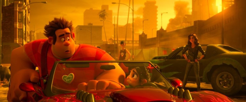 The story is more of an undercurrent than a driving force, with the world-building of the original film being extended to the internet. Here users are represented as blocky-headed avatars gawking at the sights while programs, algorithms, AIs and game characters appear and digital characters not unlike Ralph and his peers. It’s the most creative and accurate visual depiction of the PG side of the internet we’ve seen in a major release, with a combination of real and fictional sites and platforms giving it a well rounded feel. This is still the best aspect of the film.