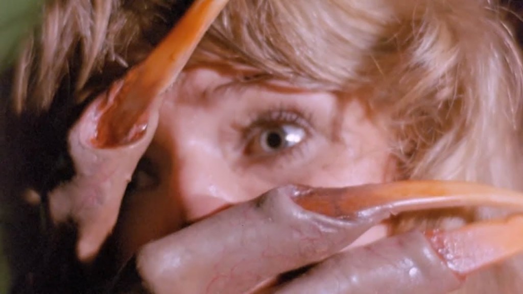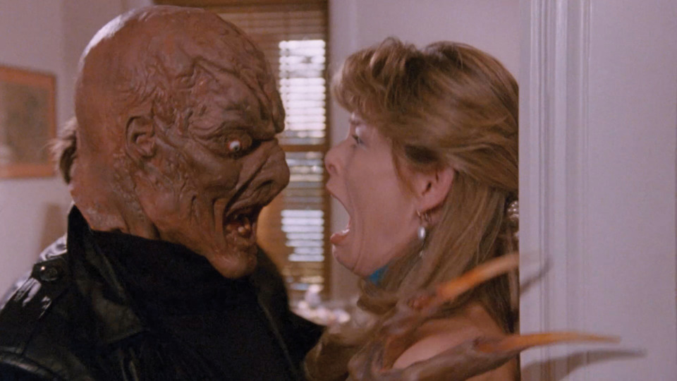 As you may already suspect this is not a good movie, but it is a better flick than you would think. Judging by the gore fx and the killer’s costume if you had told me the budget of Night Killer consisted of a Wal-Mart gift card I would believe you. But in his defense, Claudio Fragasso hoped for a more suspenseful tone for the film and disapproved of the gore which was added in later at the behest of financiers. Unfortunately Fragasso’s incompetence as a director means there is no way Night Killer is going to be the giallo-inspired sexual thriller he no doubt hoped for. The story is an absolute mess and many of the decisions characters make will have the viewer going “huh?”. When the killer makes his intimidating phone call to Melanie before attacking, she legit carries on a conversation with him. Questionable directorial decisions are on full display. Melanie’s daughter is consistently referred to and treated as a “baby” despite the fact she is at least 10 years old. There are even some shots from the killer where the opening in the mask show that whoever is wearing the costume at that time is not the one who is revealed to be behind the murders. But it is not like the final reveal of the killer makes much sense anyway.