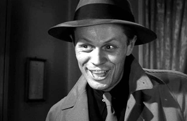 The Scene: Notorious hitman Tommy Udo (Richard Widmark) calmly enters the apartment of a wheelchair bound old woman. The sociopathic killer is there for her son Rizzo. The film’s protagonist Nick Bianco (Victor Mature) has convinced the others in his old gang that Rizzo is the squealer who has brought the heat down on them. This means to shut him up permanently they dispatch Udo to take care of him. As he methodically scans the apartment, mother makes excuses to as where her son could be. When he turns up nothing, the lunatic lets out a demented chuckle as he turns his attention to the poor handicapped woman. If he can not find the squealer he is going to send him a message that nobody spills the beans on his pal Nick. After menacing her for a bit, he gleefully wheels her out the door to the stop of the stairwell. And with a twisted joy he does the unthinkable and throws the terrified woman to her death.