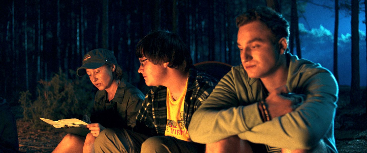Although the movie opens on a sprawling campground with dozens of characters, we get a section of the characters isolated out and the initial setting gets left in the dust. Our cache of victims are the standard genre grouping of jock, nerd, bimbo, nice guy and final girl. There’s little to make them memorable, with the nerd giving some cringeworthy dialogue that sounds like it was written by Ernest Cline. There’s very little remarkable about any of them, but the performances are certainly earnest.