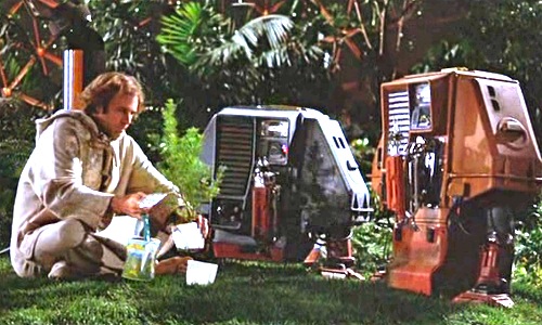 One of the claims to fame for Silent Running was that it served as an inspiration to Joel Hodgson when he created Mystery Science Theater 3000. Not only because of the plot featuring a man trapped in space accompanied only by mechanical friends, but also in the look. Trumbull’s background as a production designer is on full display as the rich and complex sets (especially the dome enclosed gardens) and models for the ship. This is one of those films which shows off just how powerful expertly crafted practical fx can be. The ships are larger than life and ornate but grounded in reality. They even had American Airline put their logo on the ship to add that extra layer of believability.