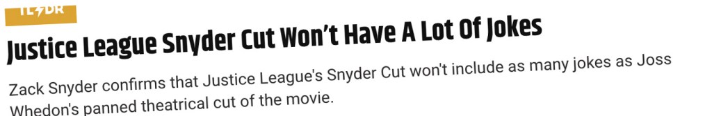 This one is such a weird flex. The jokes in Justice League were pretty awful, but some critics of the Marvel movies have suggested that their quippy nature is a problem. Fans of the DCEU have complained about the comedy Whedon added to the first JL released. The jokes were pretty crappy, but that doesn’t necessarily mean they’re also a problem in the MCU.