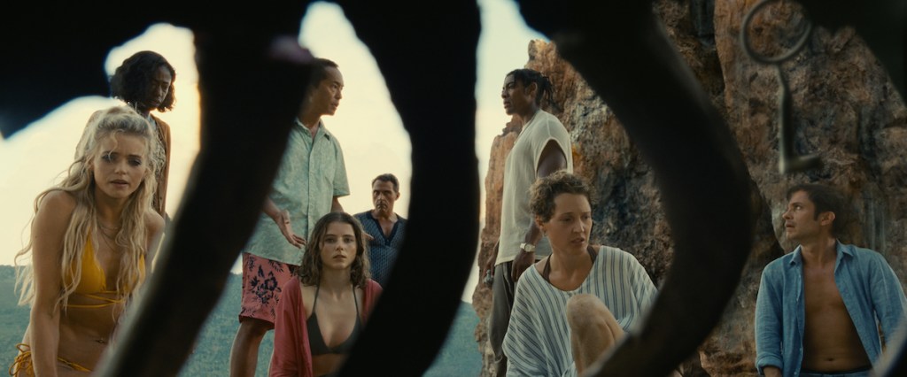 Our characters turn up to a resort where they give them special drinks based on their tastes, which is always a red flag. Shyamalan famously doesn’t know how to write characters, so instead we have one of the children walk around and ask people what their ‘name and occupation’ is. We also learn that each family at the resort has some kind of health problem and that this resort has something to do with a pharmaceutical company. Then the manager tells them about a special beach. The next day, each of the families get driven out to the beach by a Filmmaker M. Night Shyamalan Cameo Appearance.