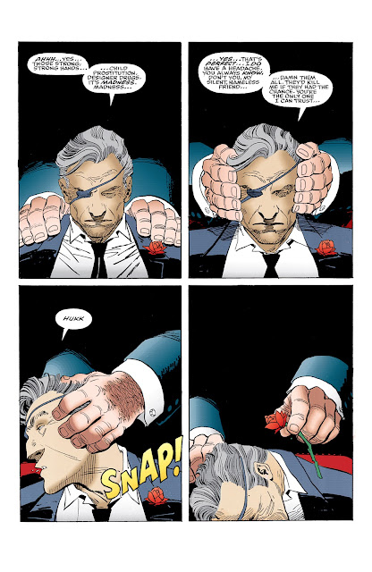 Breaking Ben Urich’s fingers: A constant thorn in the side of the Kingpin is respected investigative for the Daily Bugle, and frequent Daredevil ally, Ben Urich. During “Born Again” he seemed to be one of the few people left Matt Murdock can trust as he wants Urich to expose the truth behind the Kingpin. Of course Wilson Fisk is not about to let this stand and sends a particularly sadistic enforcer, Nurse Lois to break his fingers. When that doesn’t deter him, Nurse Lois has Urich’s murdered while making the reporter listen over the phone as it happens.