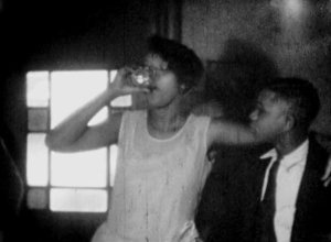 The movie is very basic, there is a Hellbound Train ominously chugging along towards the underworld with Satan at the helm. The title cards tell us along the journey what kind of sinners are passengers in each carriage of this train. From thieves to gamblers to alcoholics to prostitutes. From there we go to these various sinners in the very actions which damned their souls. To be honest what this Hellbound Train lacks in narrative it makes up for in artistry. While the Gist’s may not be filmmaker by nature, the two do have a talent that is on full display here. I do not know if they simply did not have access to a tripod or what, but their kinetic cinematography is captivating. The camera is constantly in emotion which in a way makes the audience feel like they are actually there in the thick of the action. The best way I can describe it would be a proto-documentary combined with a surreal 90’s music video. The actors onscreen capture life in the African American community of the early 20th century in a hyper-realized way. Given that this was an America where Jim Crow and segregation was at full strength, this picture was probably the first time many white moviegoers may have seen what life in black communities across the country was like. No doubt, they were likely shocked to see the people who live in this world were normal people dispelling any myths they may have built up. It is a world both grounded in reality with exaggerations of citizens in various dens of inequity while Satan is constantly on the prowl. Granted their Satan is clearly a man in a cheap Halloween costume, but with the way they shoot him combined with the ultimate grainy nature of their footage it creates an unintentionally eerie devil who delights in the suffering and evils of humanity.